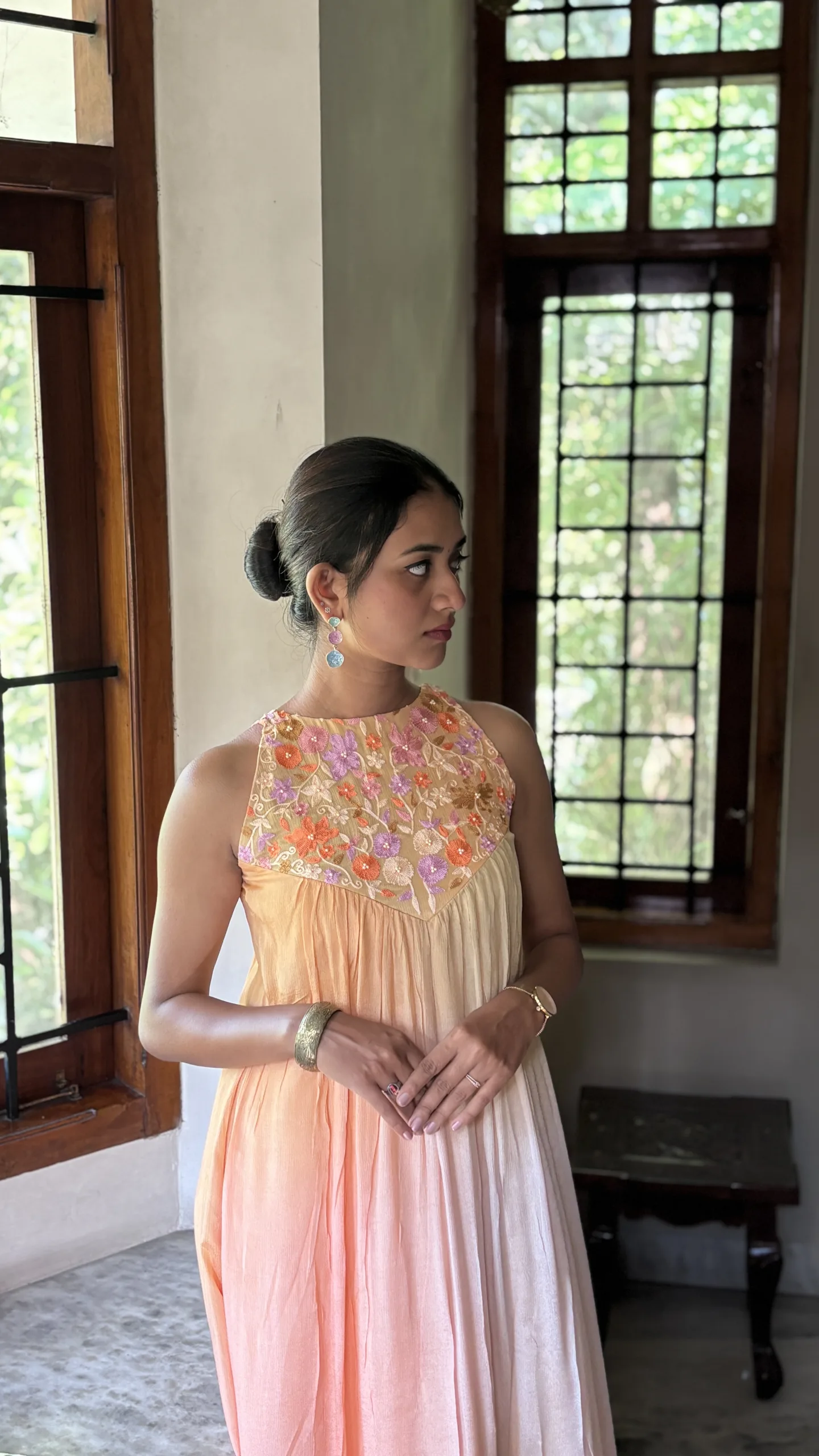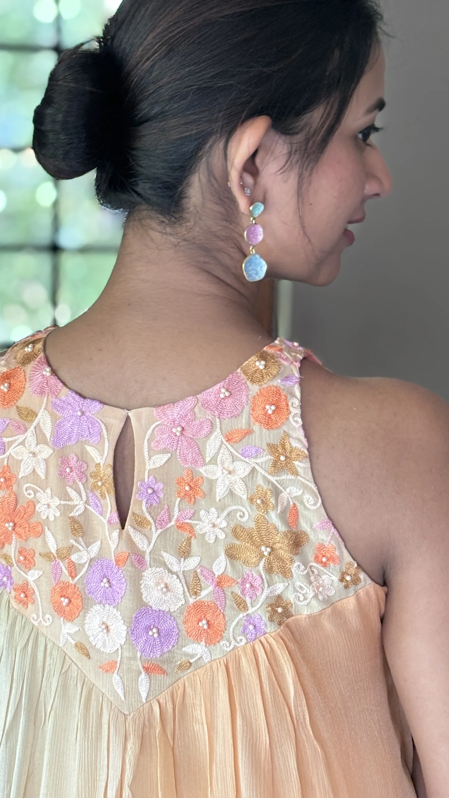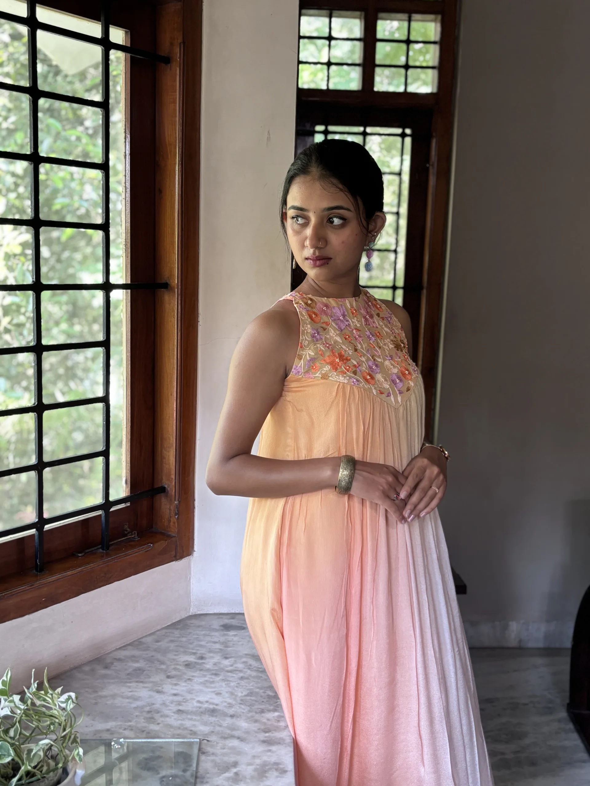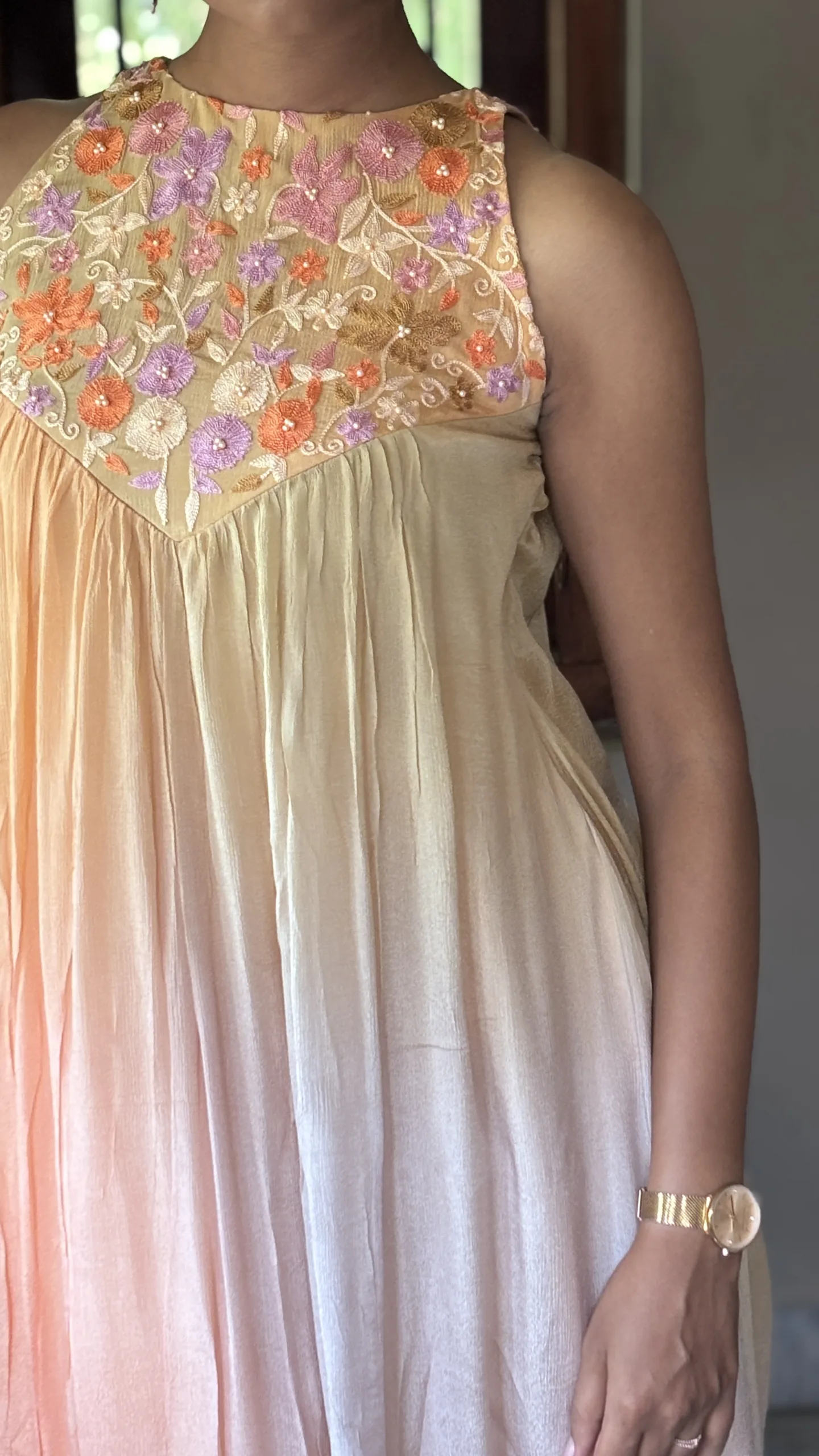 • Yoke: Embellished with intricate floral Ari embroidery, offering artisanal charm and delicate texture