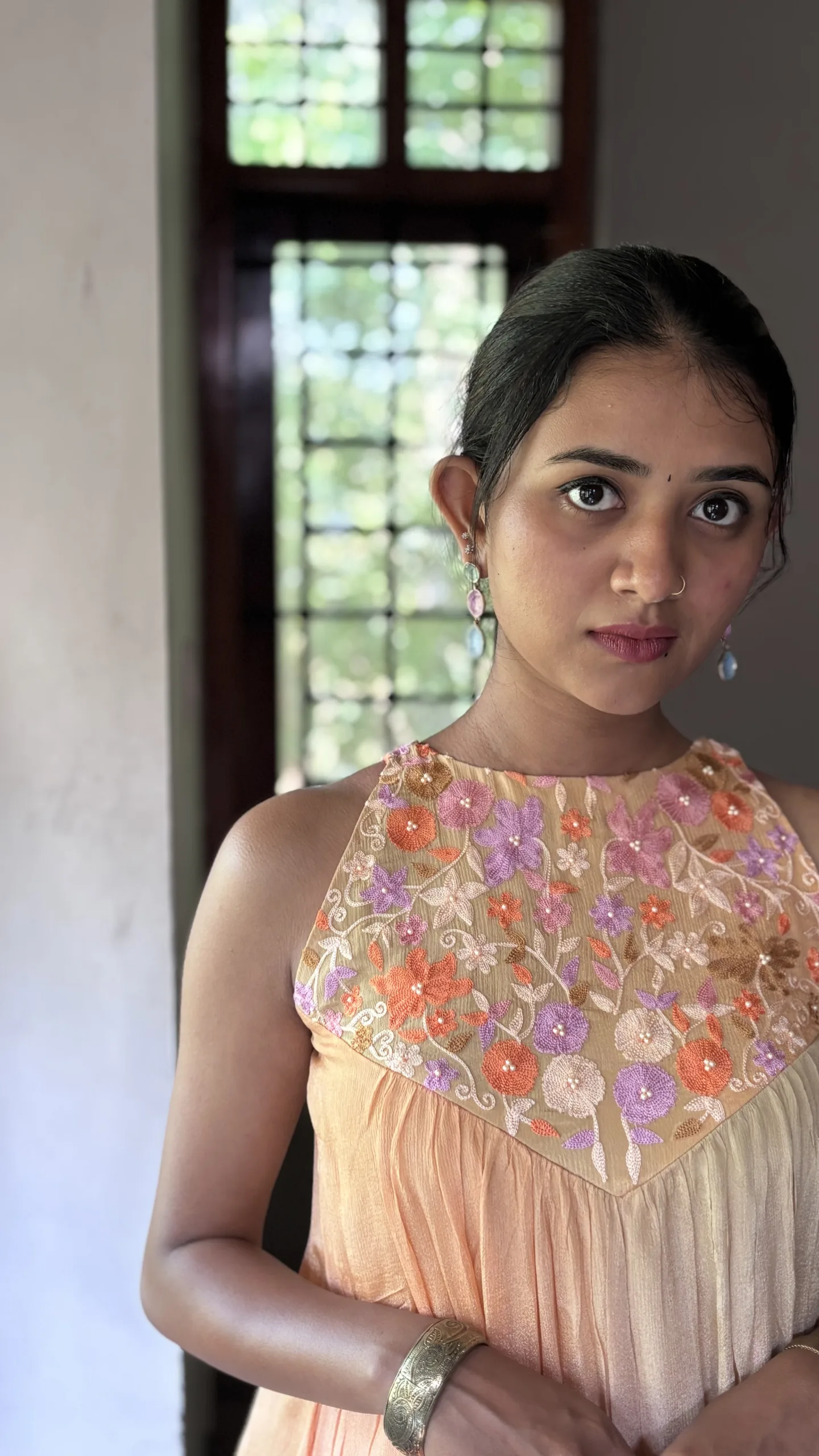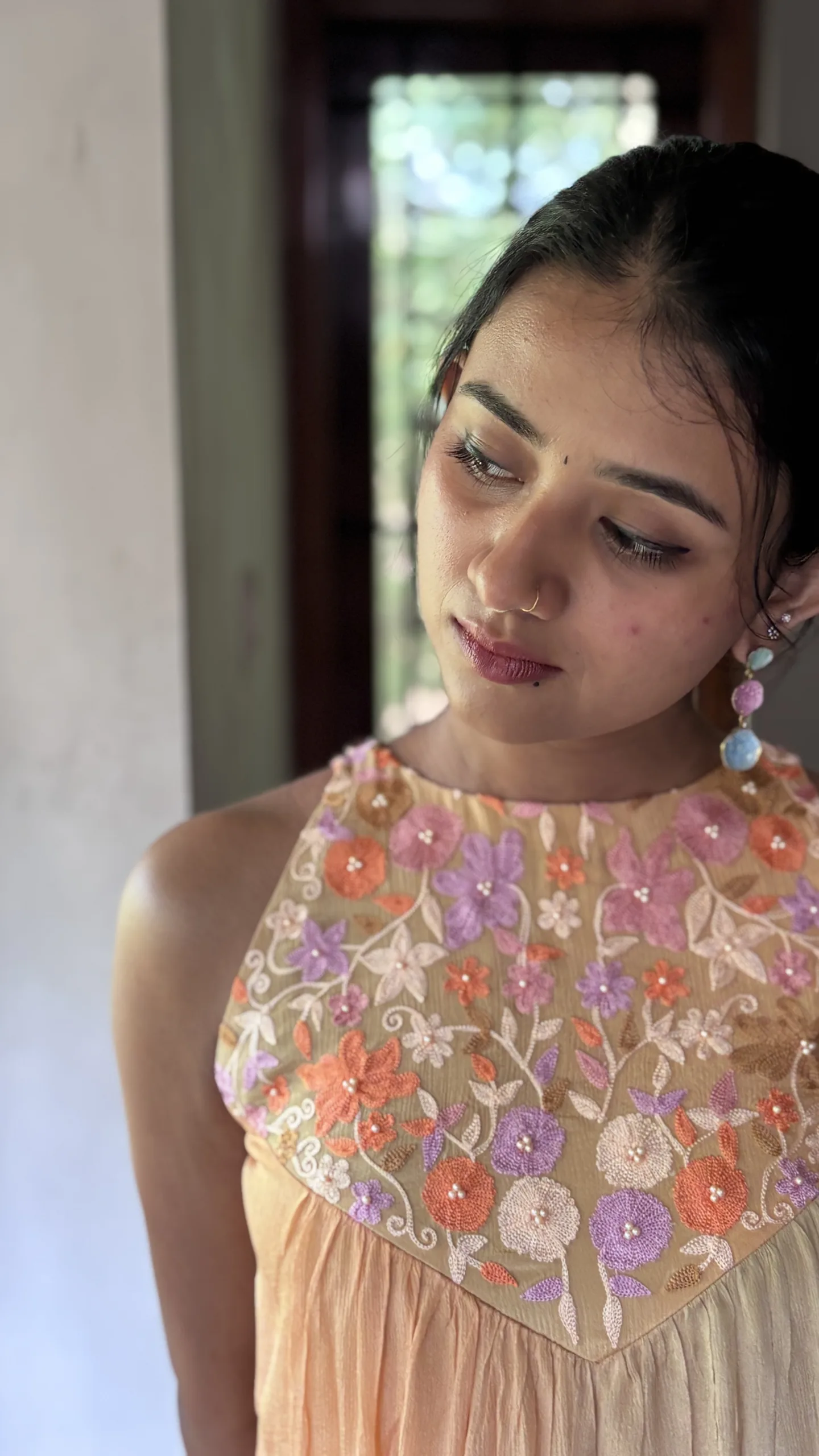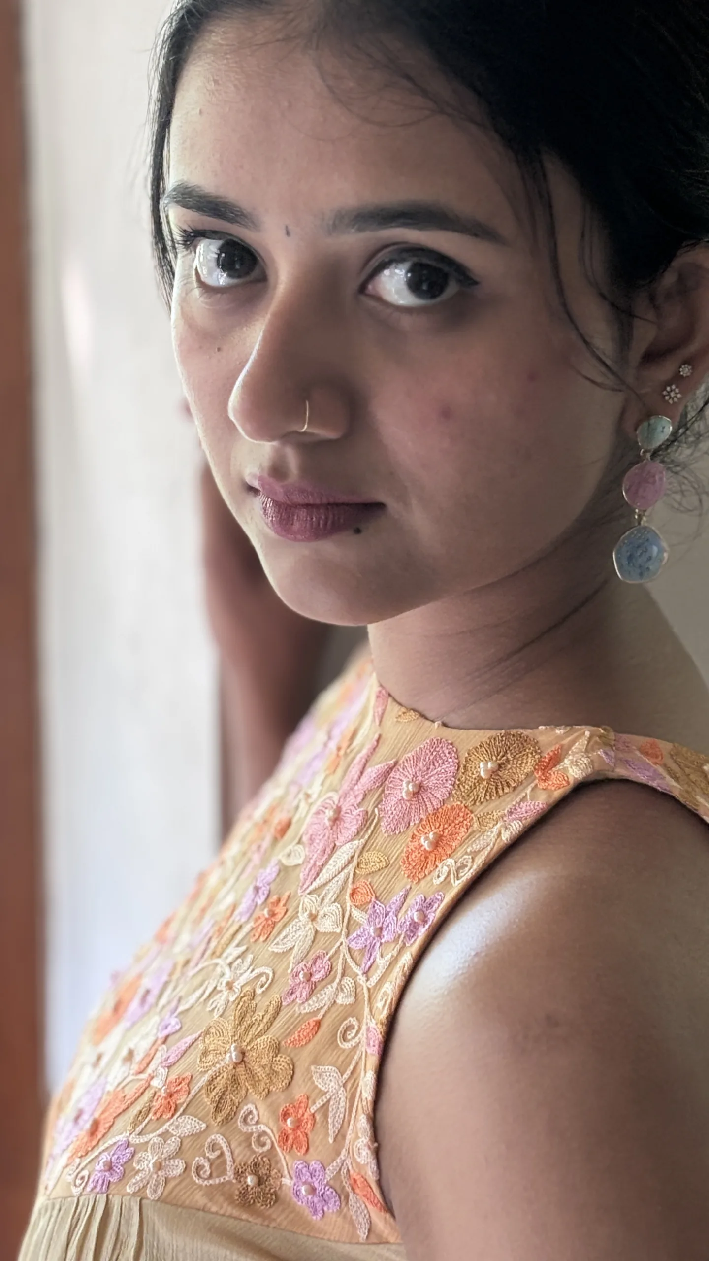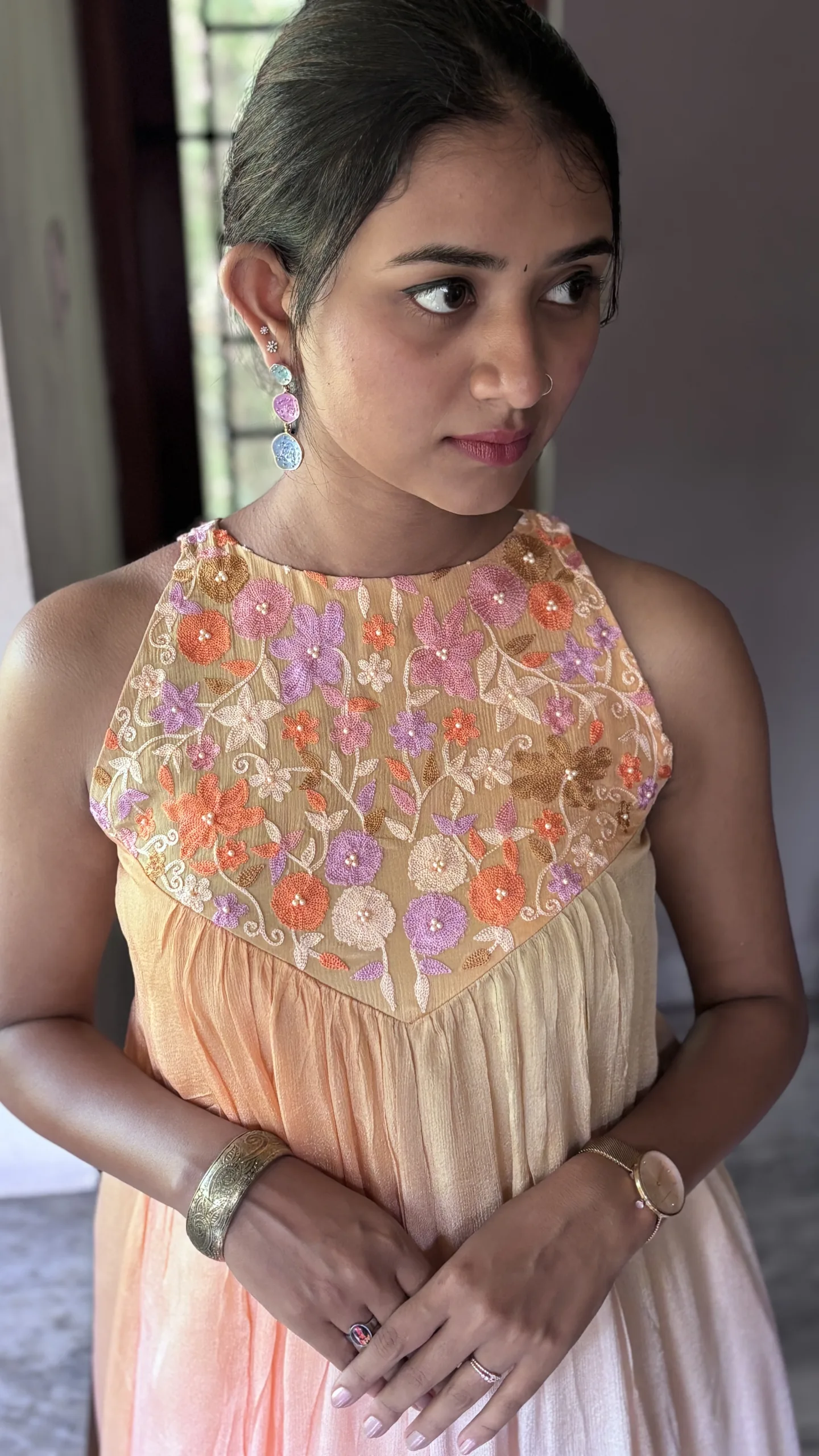 • Yoke: Embellished with intricate floral Ari embroidery, offering artisanal charm and delicate texture