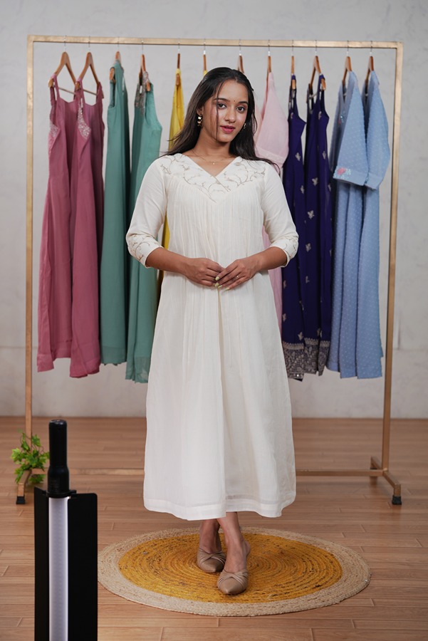 Design: Embroidery on the yoke with full sleeves and ankle-length finish