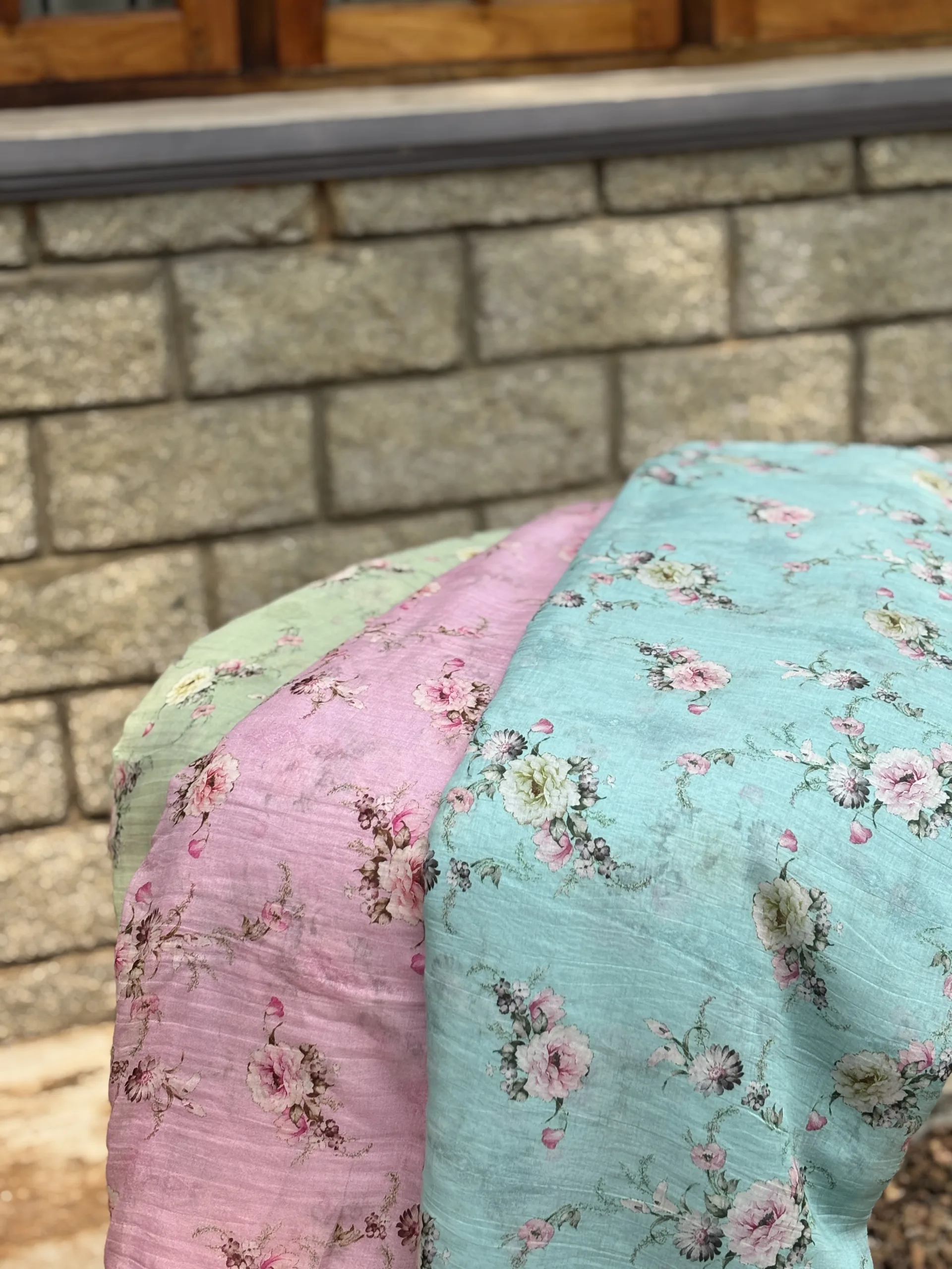 Fit: The fabric’s fluidity and structure make it perfect for A-line dresses, kurtas, tops, dupattas, and fusion wear. It adapts beautifully to both tailored and flowy silhouettes.