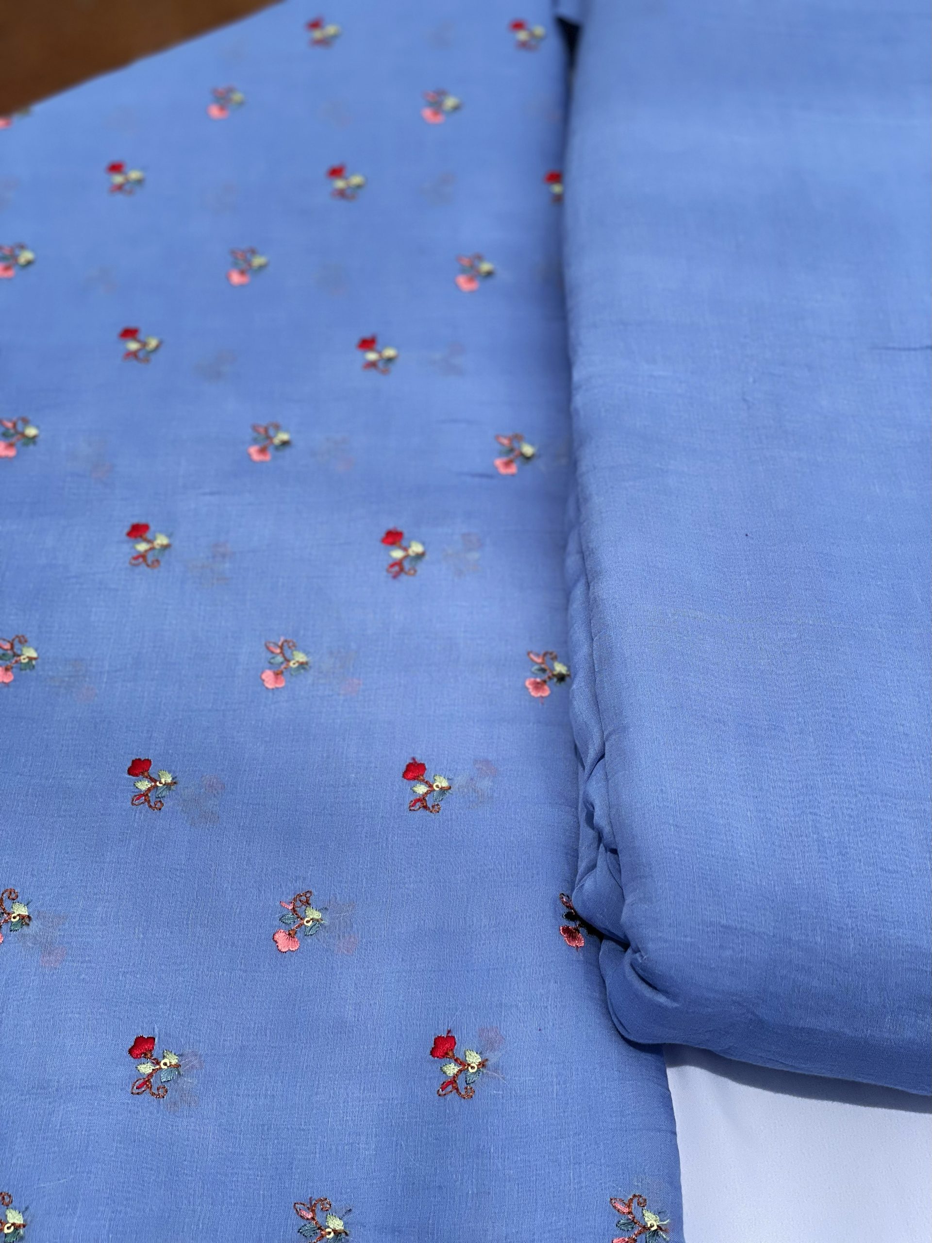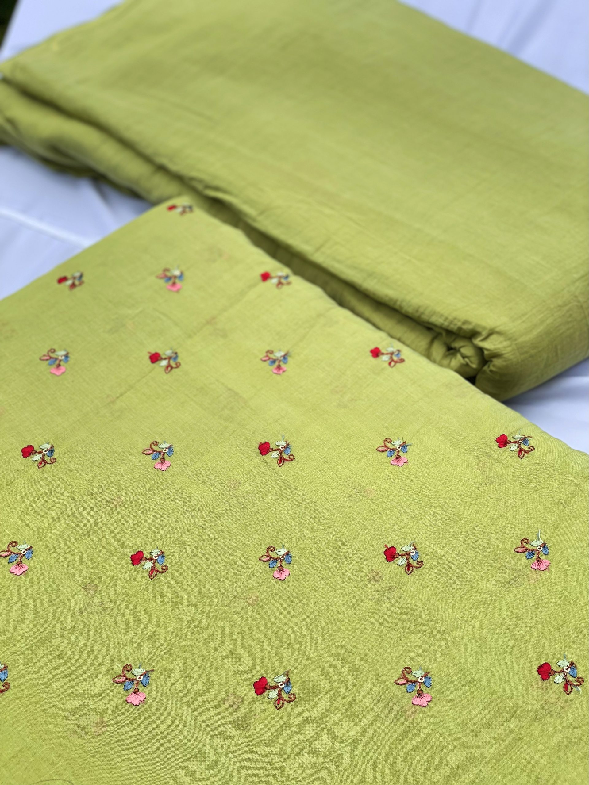 Discover the charm of Malai-Chanderi fabric, known for its soft texture and subtle sheen, now elevated with multicolour floral embroidery that adds vibrance and artisanal appeal. This fabric blends traditional craftsmanship with modern aesthetics, making it a versatile choice for ethnic and fusion wear.