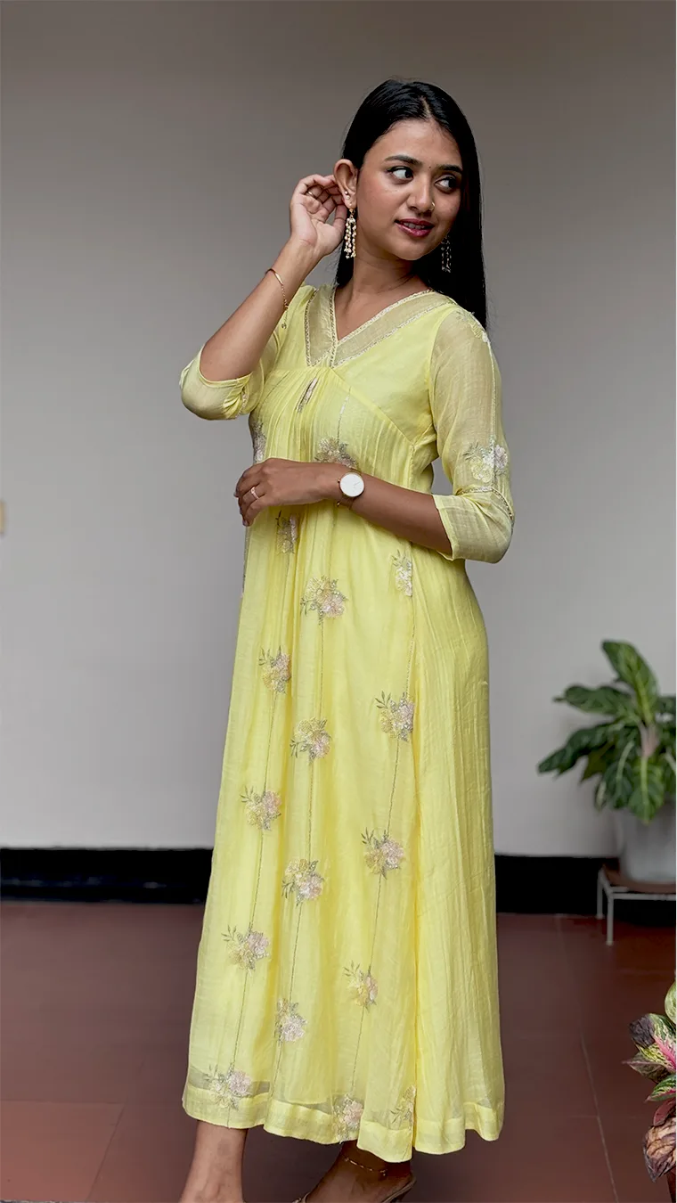 ◦ Small gathers under the yoke for a soft, feminine silhouette