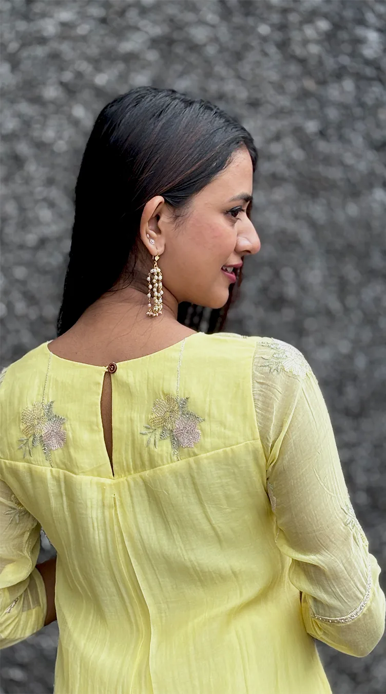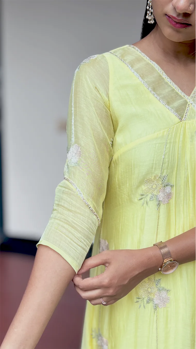 ◦ Intricate bead handwork on both neckline and sleeves for a cohesive, artisanal finish