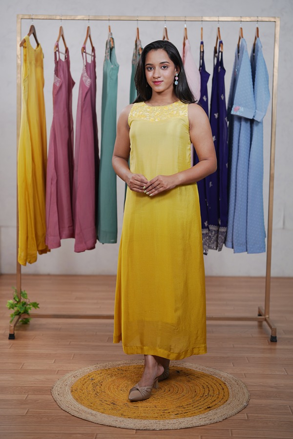 Pure Chinon Kurta with Ombre Shade & Hand Embroidered Yoke