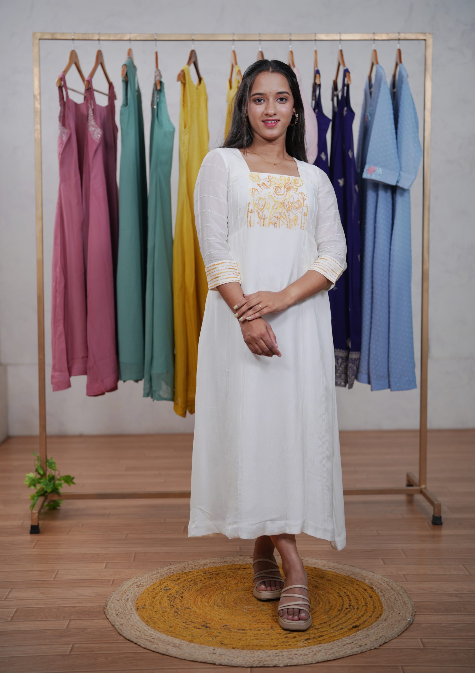 • Design: Thread embroidery on the yoke, full sleeves, ankle-length finish, and ombre shading for visual appeal