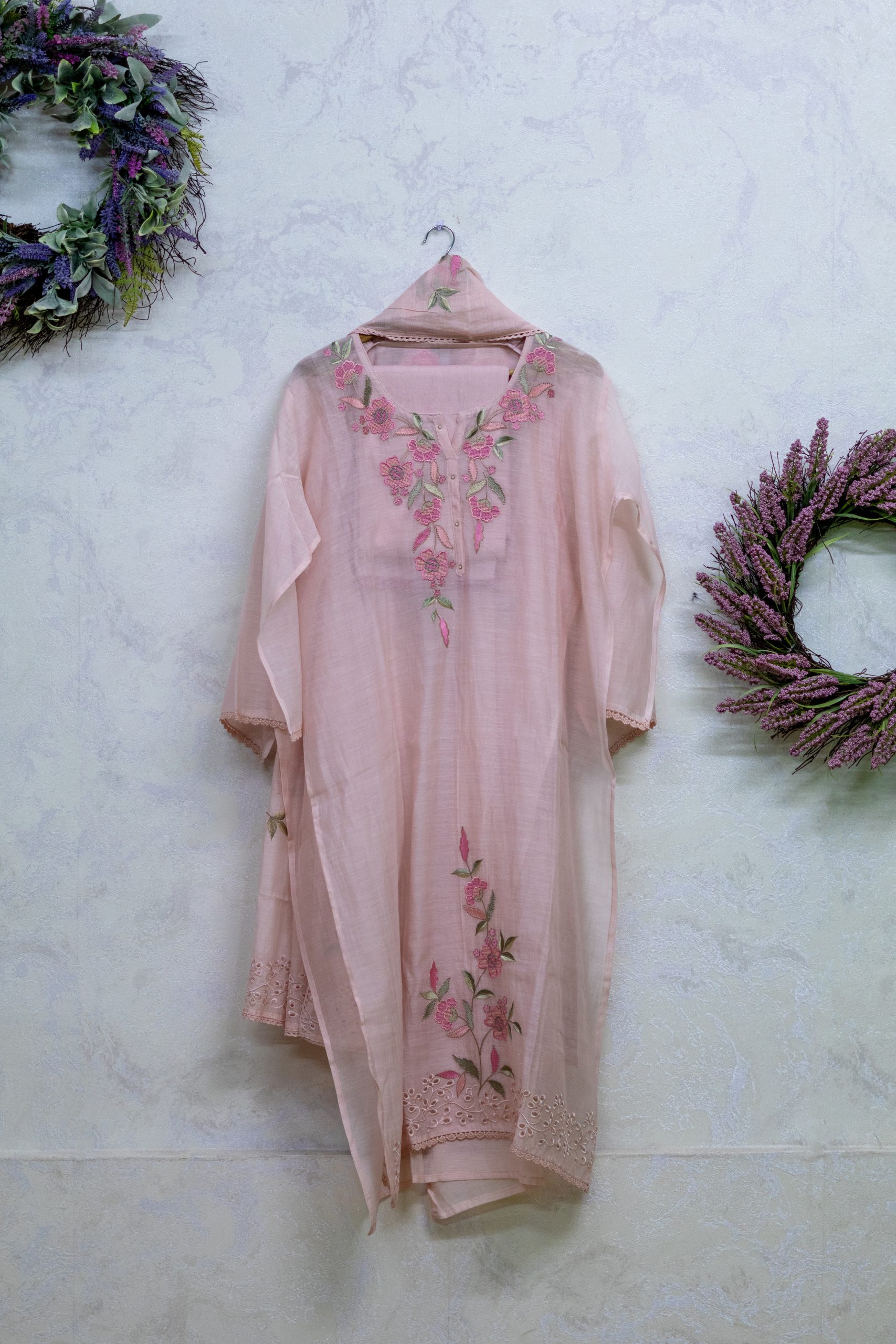 • Design: Floral thread embroidery on top and dupatta; plain bottom for understated elegance