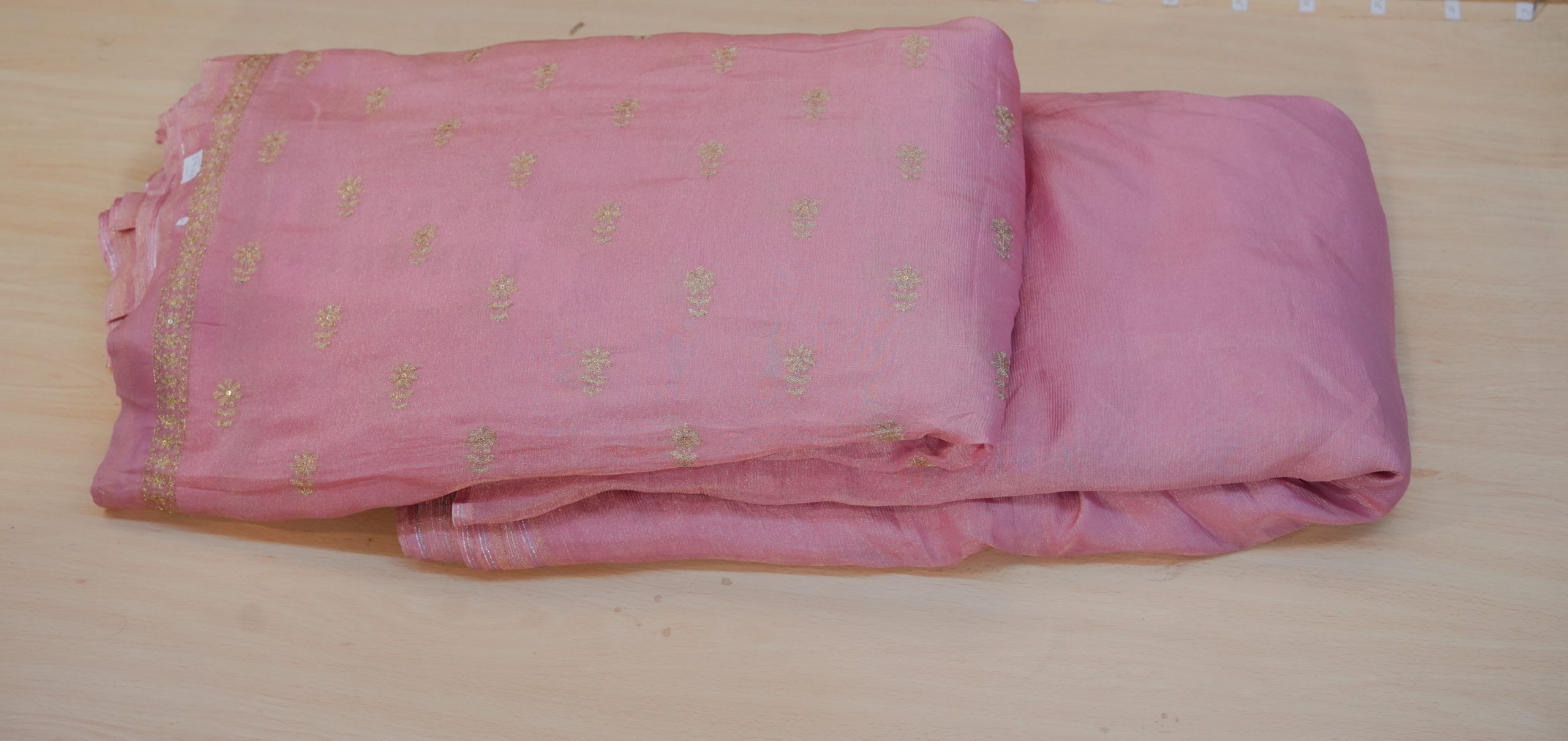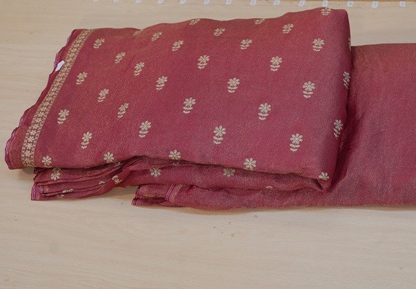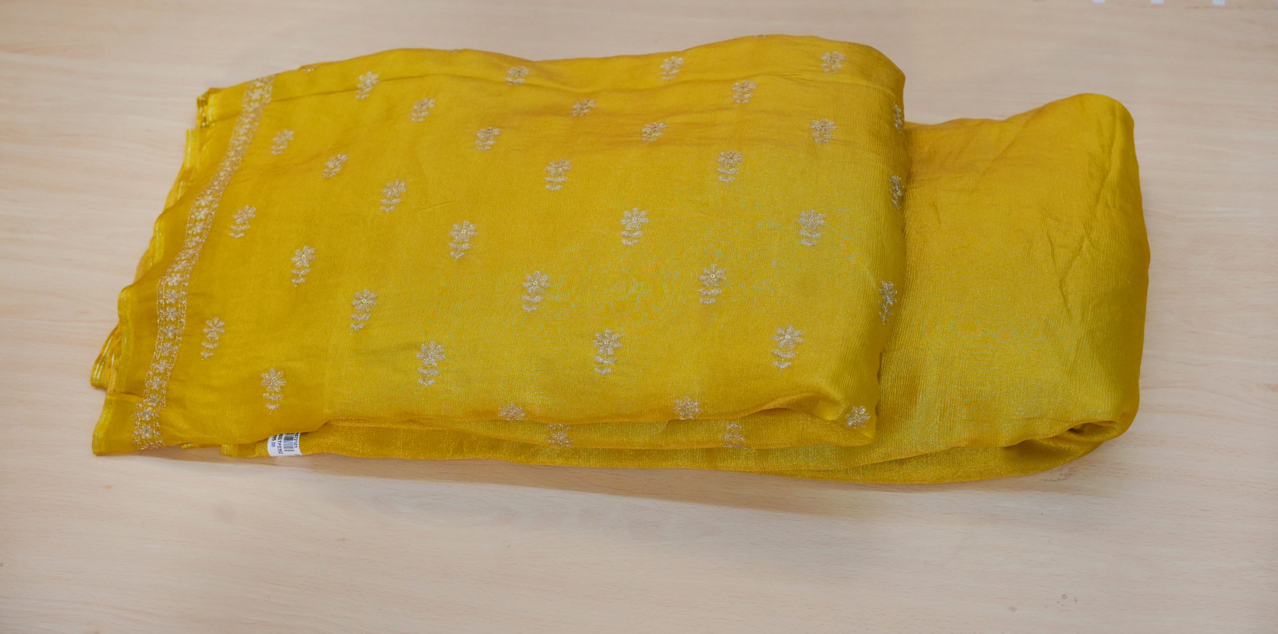 Pure Tissue Silk Fabric with golden embroidery and one-side border: