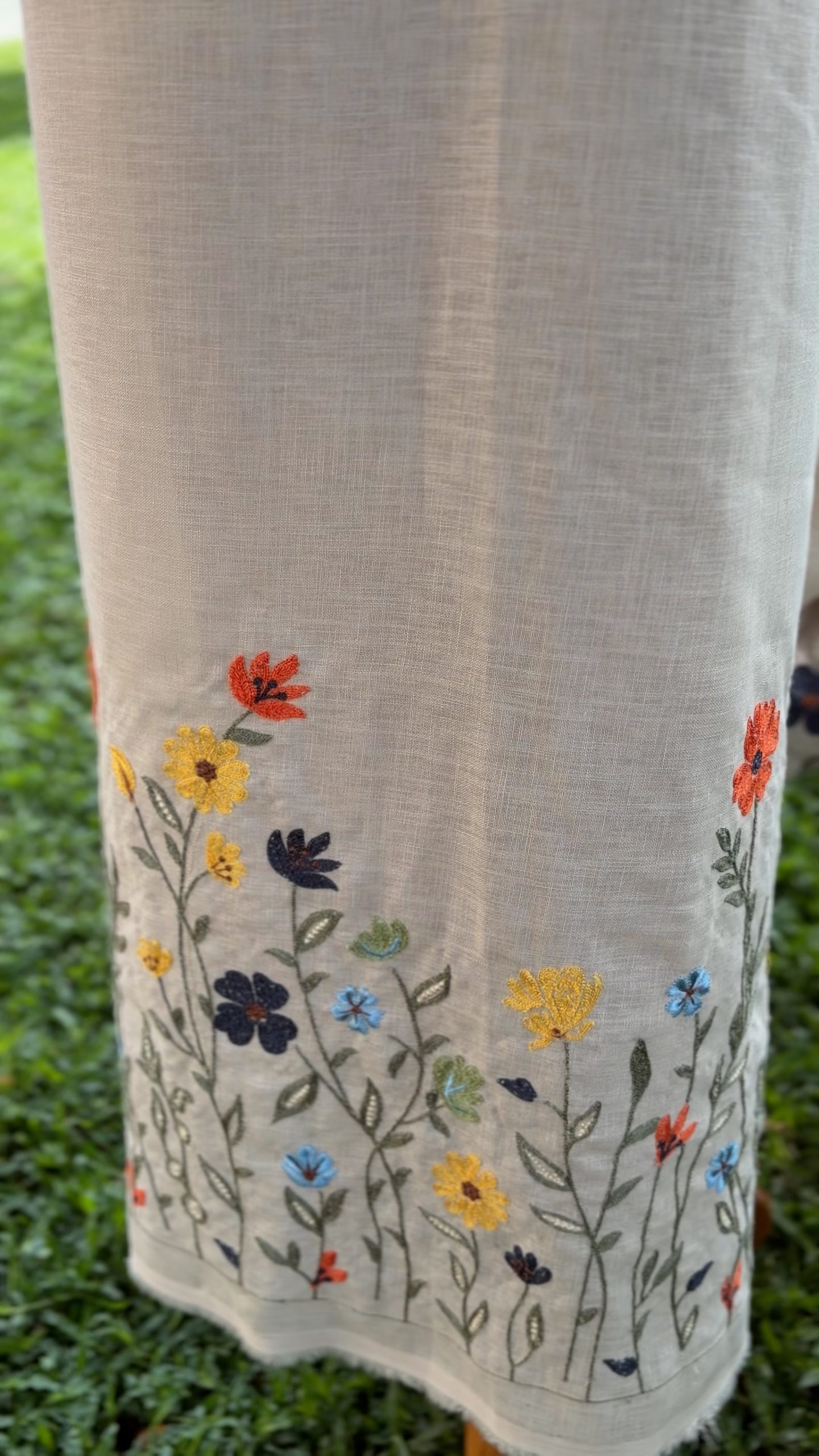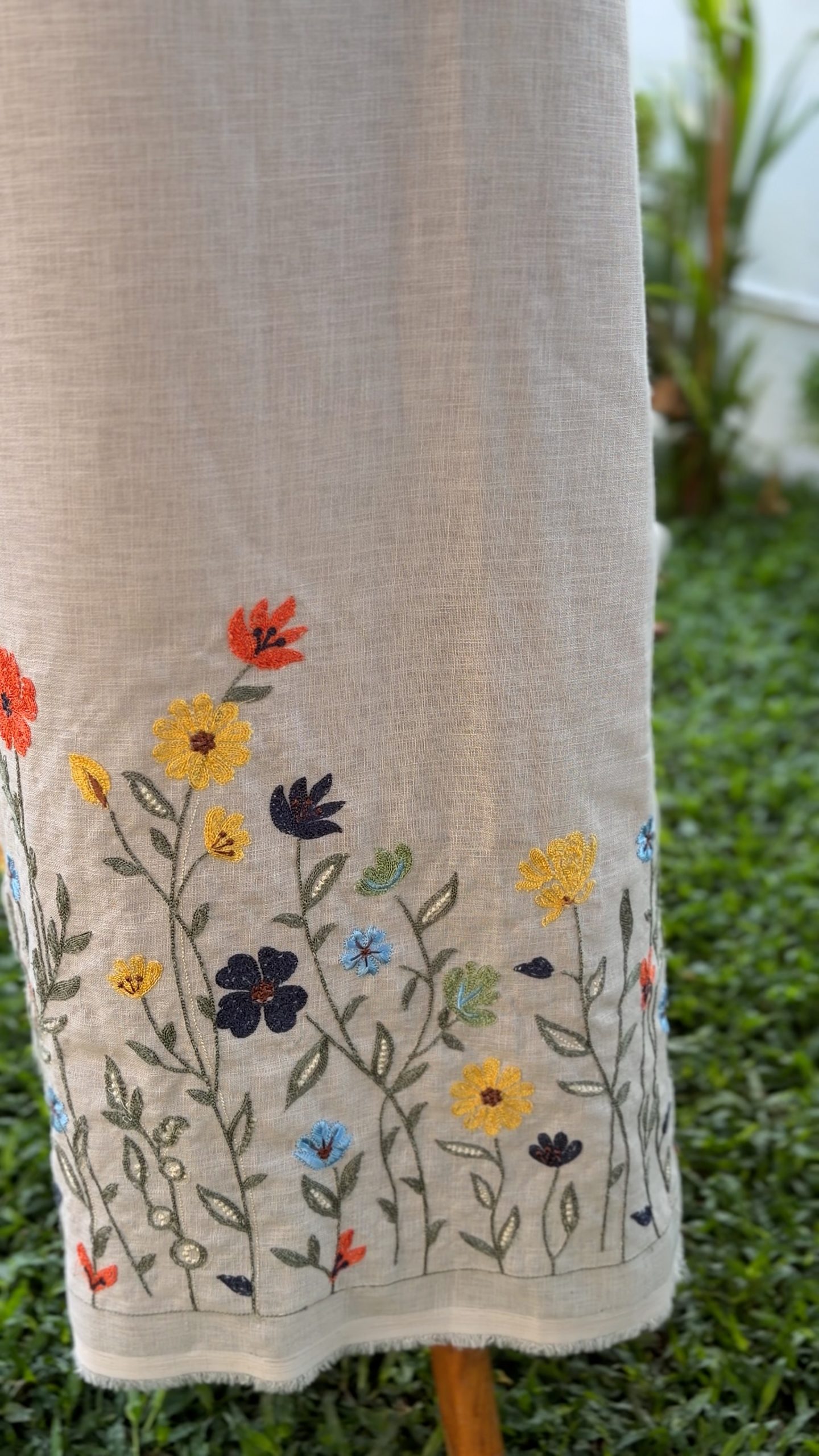 Elevate your creations with our Semi Linen 58-inch big-width fabric, beautifully crafted with multi‑colour floral embroidery on one side. Designed for comfort, durability, and effortless drape, this fabric is ideal for ethnic wear, fusion outfits, home décor accents, and premium tailoring projects.