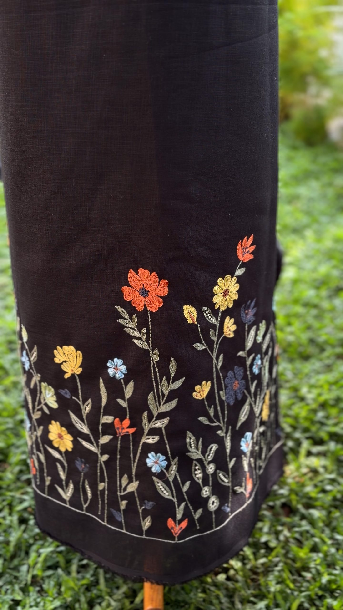 Be the first to review “Semi Linen 58” Big-Width Fabric with Multi‑Colour Floral Embroidery – Black & Light Chikku”